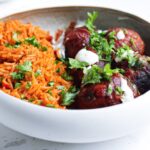 Griekse soutzoukakia met keftedes (gehaktballetjes) en Tilda Tomato & Basil
