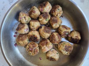 - Bak de balletjes in olie rondom bruin of voor een lichtere versie kan je ze 20 minuten in de oven bakken op 200°C.