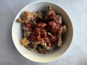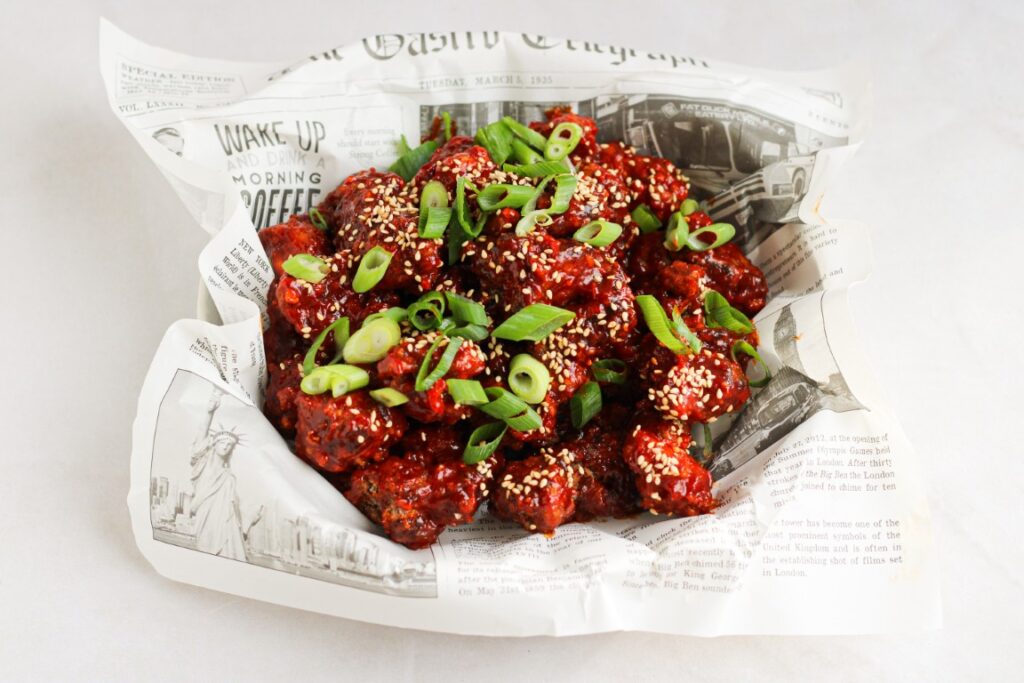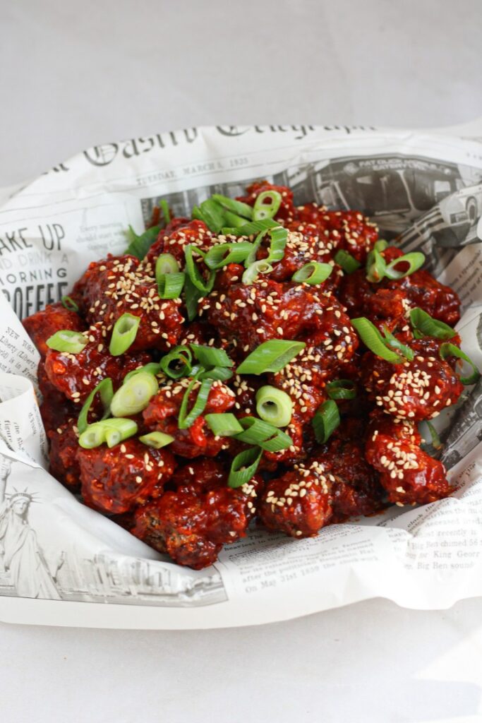 De yangnyeomsaus maakt van dit gerecht een Koreaanse topper: een glanzende, sticky mix van zoet, pittig en hartig die meteen herkenbaar is voor elke Koreaanse foodlover. De combinatie van gochujang, knoflook, suiker, ketchup en sojasaus geeft die typische diepe smaak waar iedereen zo verslaafd aan is. Het is precies deze saus die de knapperige kip verandert in een echte K-Food klassieker: kleverig, intens van smaak en simpelweg onweerstaanbaar. Je bent gewaarschuwd!