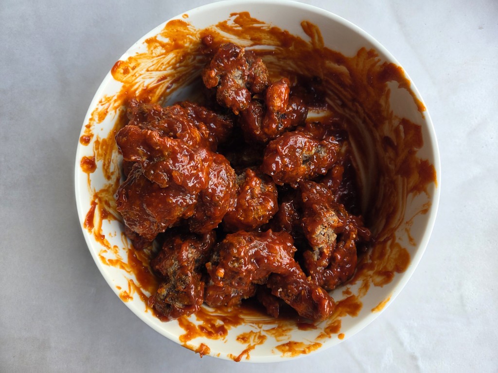 Je kan kiezen voor de kippendijen met bot (lekker peuzelen!), maar kinderen (en veel volwassenen waaronder ikzelf) zijn vaak fan van de hapklare stukjes dijvlees zonder botjes: boterzacht, sappig en ideaal om perfect krokant te bakken. De sticky saus zorgt ook voor vieze vingers, waardoor je er snel een boeltje van maakt. 😉